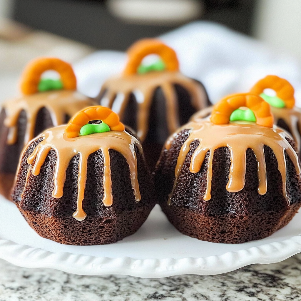 Indulge in Dark Chocolate Pumpkin Shaped Mini Bundt Cakes