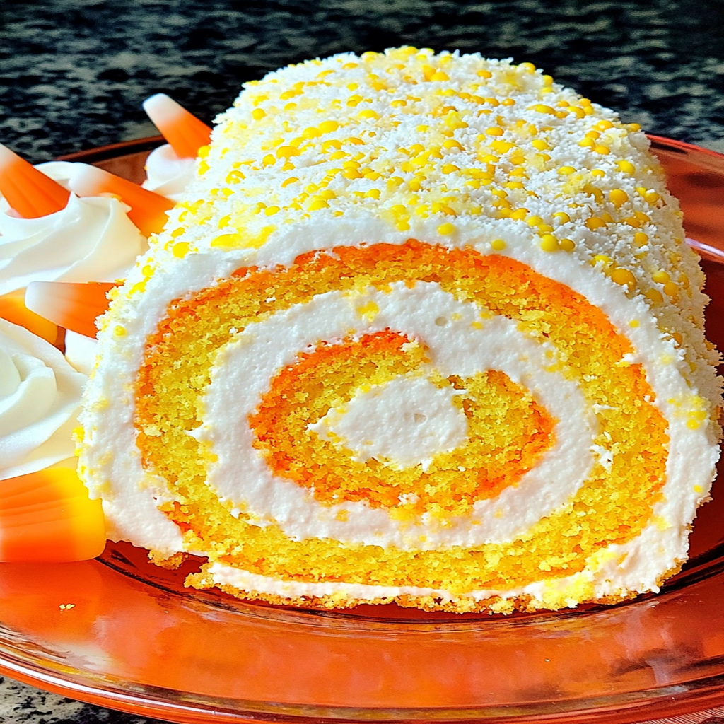 Irresistible Candy Corn Vanilla Swiss Cake Roll Recipe