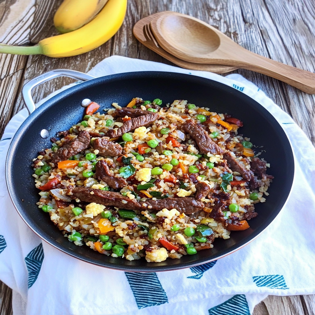 Delicious One-Pan Cauliflower Fried Rice and Beef Stir Fry