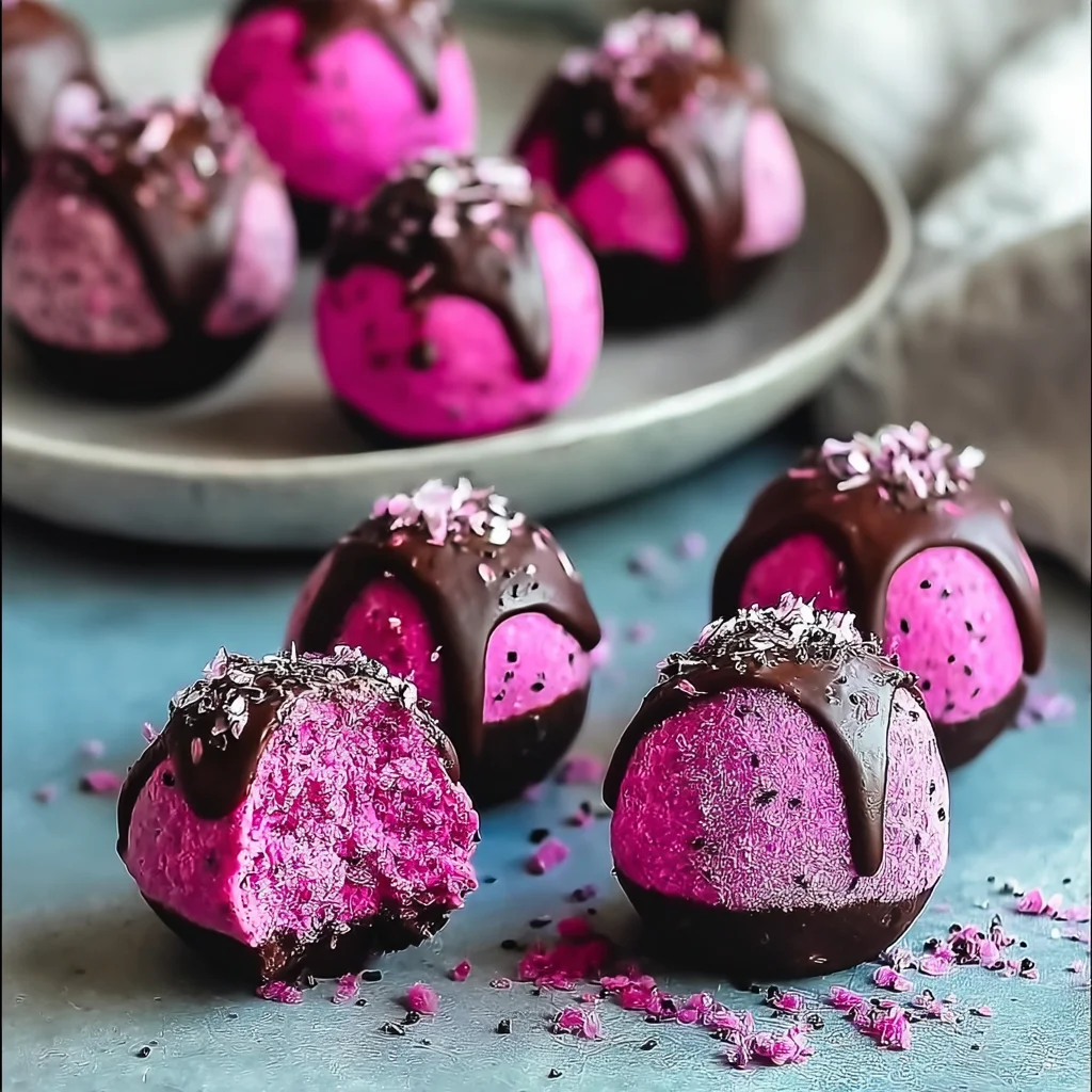 Indulge in the rich flavor of dark chocolate, packed with antioxidants and perfect for guilt-free snacking. Experience the vibrant taste of fresh dragon fruit, adding a tropical twist and a burst of color to your treats. Enjoy the delightful texture of unsweetened shredded coconut, offering a chewy contrast that elevates each bite. Create these delectable treats in just 15 minutes—no baking required! Impress your friends and family with a visually stunning dessert that’s both healthy and satisfying.