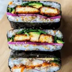 Store any leftover onigirazu wrapped tightly in plastic wrap in the fridge. For reheating, pop it in the microwave for 20 seconds or until warmed through. Enjoy within two days for best quality!