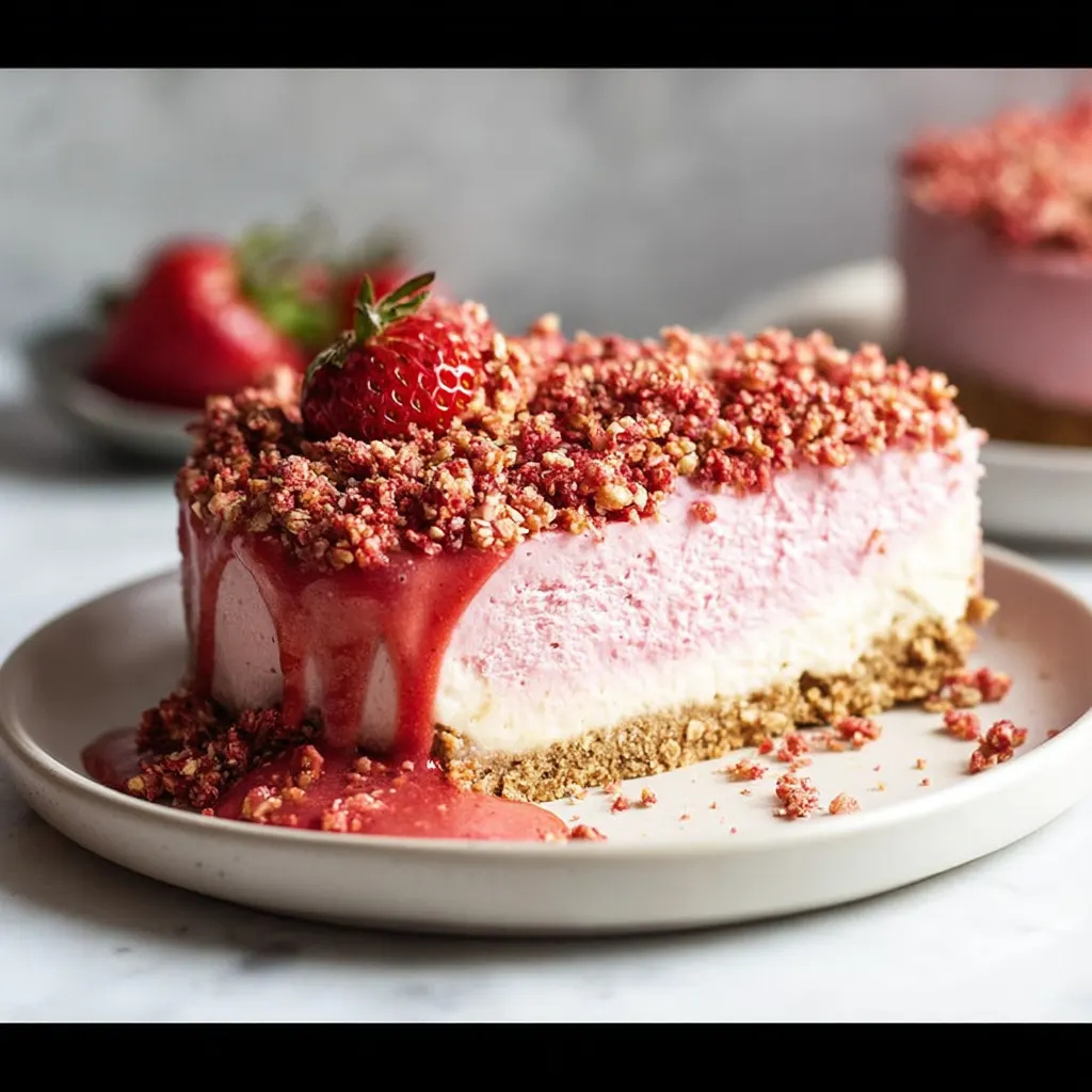 Easy Vegan No Bake Strawberry Crunch Cheesecake