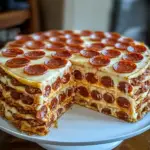 And there you have it! Your very own Pepperoni Pizza Layer Cake ready to wow every guest at your table—or perhaps just yourself on a quiet Tuesday night (we don’t judge). Enjoy every cheesy bite of this delightful creation!