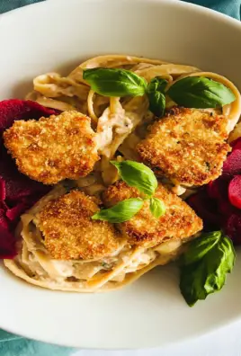Crispy Tofu Hearts with Beet Fettuccine Alfredo Delight