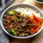 Start by marinating the beef while you prepare your veggies and rice. Sear the beef for that perfect caramelization, then cook your rice according to package instructions while stir-frying the vegetables. This sequence ensures everything finishes at just the right time.
