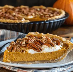 Pumpkin Pecan Cheesecake Pie is the ultimate autumn delight, featuring a luscious pumpkin cheesecake filling nestled in a buttery graham cracker crust, crowned with crunchy toasted pecans. This indulgent dessert is perfect for holiday gatherings or cozy nights at home, delivering warmth and sweetness with every bite. With a stunning presentation, it’s sure to impress your guests and become a seasonal favorite.