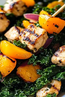 Quick Orange Ginger Kale Salad & Chicken Veggie Kabobs