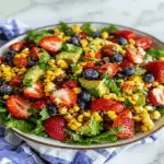 Strawberry Avocado Corn Salad pairs wonderfully with grilled meats such as chicken or shrimp. It also complements tacos or fish dishes beautifully. For a lighter meal, serve it alongside quinoa or brown rice bowls for added nutrition. another fruity salad option This salad can also be enjoyed on its own as a refreshing lunch option during hot days. Its vibrant flavors make it versatile enough to accompany various cuisines.