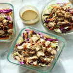 To store leftover Chicken & Cabbage Salad Bowls with Sesame Dressing, place them in an airtight container and refrigerate. It’s best to keep the dressing separate until you’re ready to eat again to prevent the cabbage from wilting. Leftovers should be consumed within three days for optimal freshness and flavor.