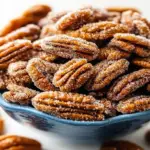Cinnamon sugar candied pecans add a delightful touch to various dishes. They’re fantastic in salads with mixed greens and goat cheese or as a topping for oatmeal or yogurt. You can also sprinkle them over desserts like ice cream or use them in baked goods like muffins or cookies for added flavor and crunch.