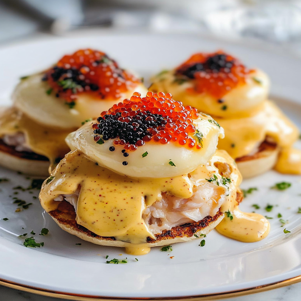 Indulge in Crab Eggs Benedict with Caviar Delight