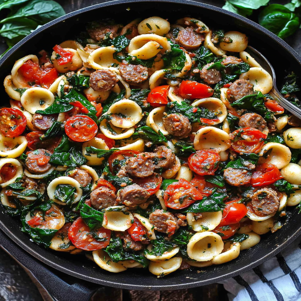 Cozy Sausage Orecchiette with Spinach and Tomatoes Recipe