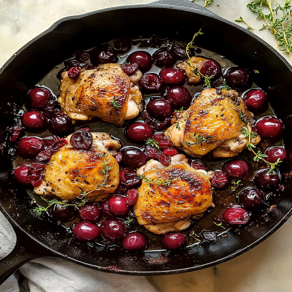 Savory Cast Iron Chicken Thighs with Cherries Recipe