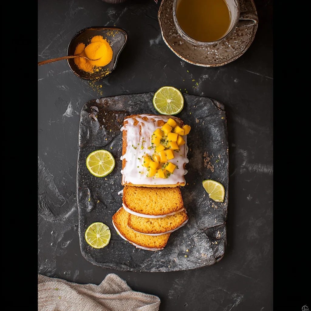 A delicious and moist vegan cake made with mango and coconut for a tropical flavor.