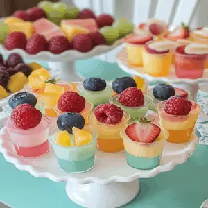 These delightful treats remind me of childhood birthday parties where the dessert table was stacked high with rainbow-hued gelatin cups. Each one was a mini masterpiece, beckoning me to dive in and taste the sweetness inside. They’re not just for kids, though; these fruity delights are perfect for adults too—whether you’re hosting a barbecue, a picnic, or simply looking to impress your family with a fun dessert. Let’s create some magic in the kitchen!