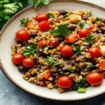Mediterranean Lentil and Quinoa Salad is a vibrant and nutritious dish that combines protein-packed lentils, fluffy quinoa, and a rainbow of fresh vegetables. Tossed in a zesty lemon-olive oil dressing, this salad bursts with flavor and offers a delightful crunch in every bite. Perfect for meal prep or as a light side dish, it’s a refreshing celebration of Mediterranean cuisine that’s sure to impress at any gathering.